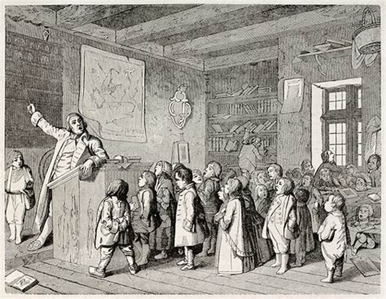 かつては教育を受けることは自由意志であった。自由意志と言っても、殆どの大人でさえ文字が読めない時代では、教育を受けられる子供は資産家や上流階級に限られる。教師の数も限られていたし、そもそも教師と言う職業などはなかった。セネカは教員免状があったからネロの教師に招かれたのではないし、アリストテレスが少年のアレクサンダー大王を教えたのも職業だったからではない。貴族や有産階級は、教養人を子供の教育係に雇えたが、一般の人々は社会生活の中で何かを学び取っていた。農民の子は作物についての知識や育て方を大人と一緒に働きながら覚え、職人は親方を手伝いながら技術を修得した。しかし、近代産業構造の変化は、求められる労働力の質を変えた。